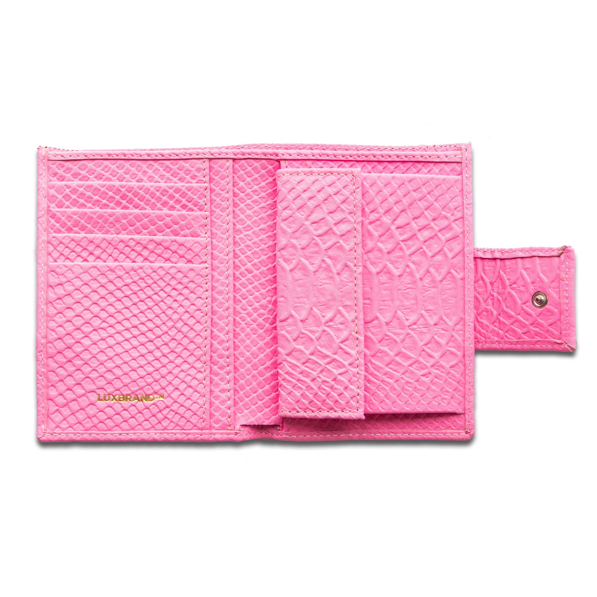 Ogni esemplare è unico: la particolare lavorazione della pelle Mamba crea sfumature e rilievi naturali che rendono ogni portafoglio diverso dagli altri.